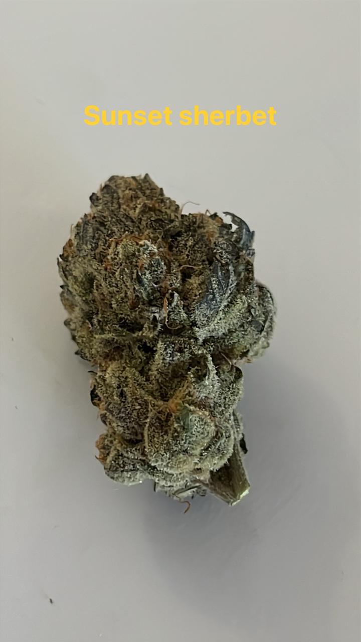 Sunset Sherbet (often just called Sherbet) is a very popular hybrid cannabis strain, famous for its dessert-like flavor and balanced but potent effects. Itβs actually a descendant of Girl Scout Cookies, which explains the similar vibe.
